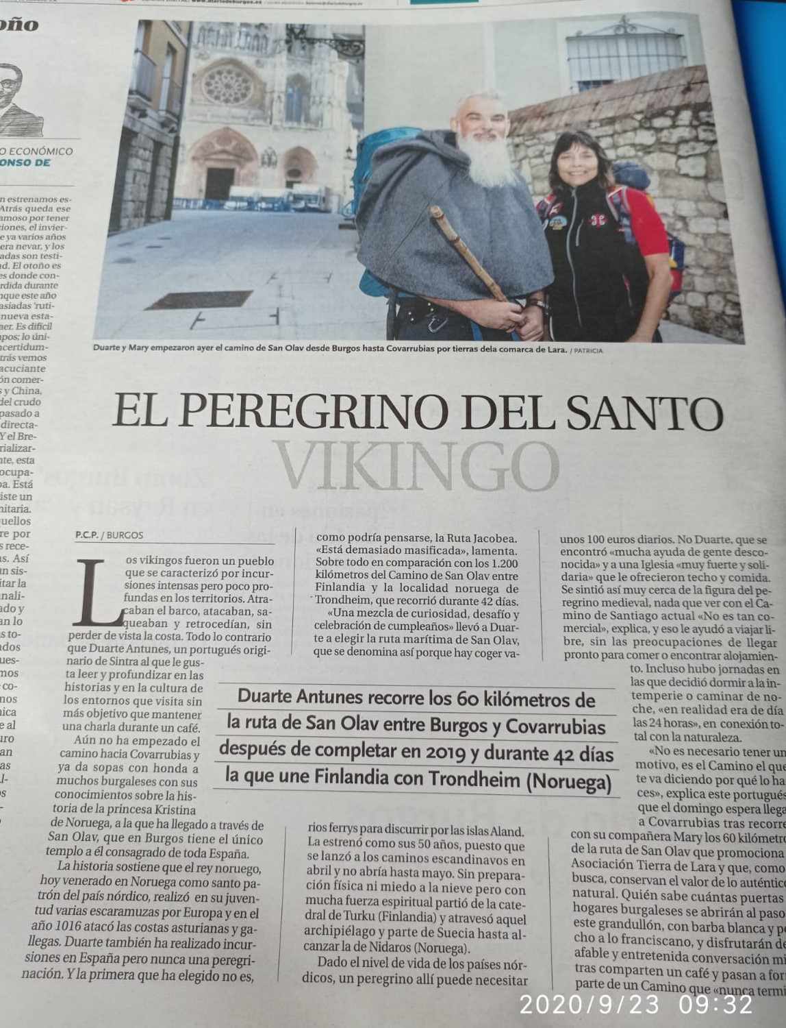 Duarte es portugués, ha recorrido los 1200 km del camino de San Olav noruego en 42 días y mañana comienza el recorrido español.